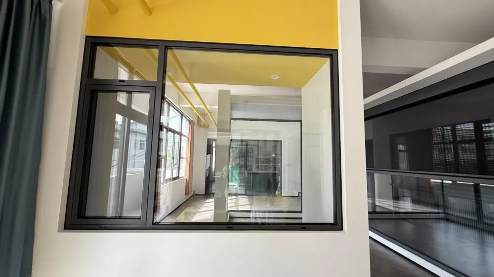 Les fenêtres à battants minces en aluminium, avec leur cadre ultra-étroit et leur immense panneau de verre fixe, combinées à la poignée supérieure et à la conception du ventilateur caché, assurent une ventilation et une vue maximales une fois ouvertes, créant ainsi un espace de vie spacieux et bien ventilé.
