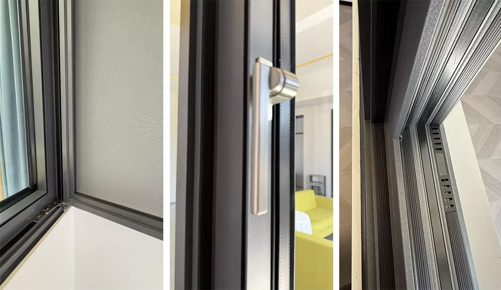 La fenêtre à battants à cadre mince avec écran intégré, composée de bandes de nylon PA66 d'aluminium primaire avec une épaisseur de paroi de 3,0, peut assurer la stabilité et la rigidité de la fenêtre et présente d'excellents effets d'isolation thermique et phonique. Écran rétractable à double roue intégré. L'utilisation quotidienne qui donne vie à la commodité est hautement transparente et le filet sans poussière garantit que vos points de vue restent parfaits et clairs. La conception unique d’étanchéité angulaire élimine définitivement les fuites d’eau au niveau de l’interface clé du cadre secondaire.